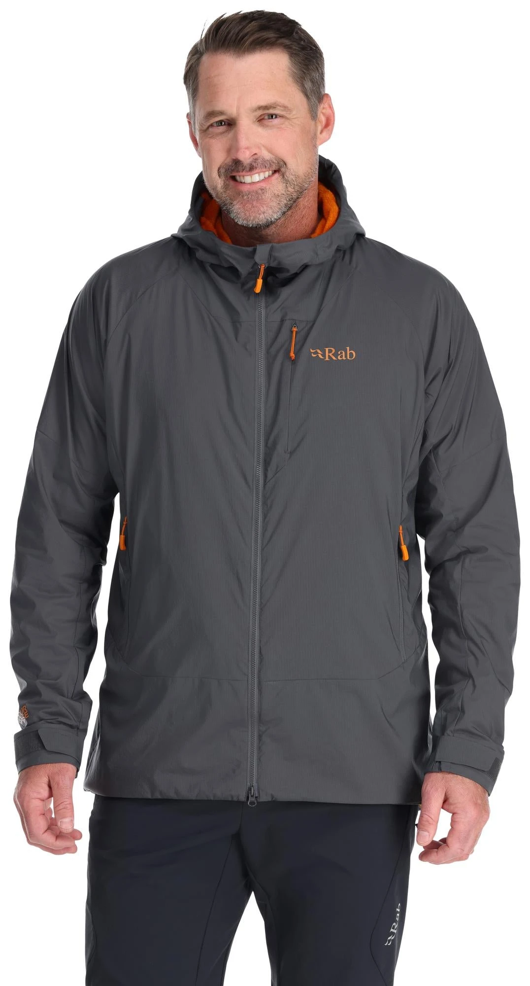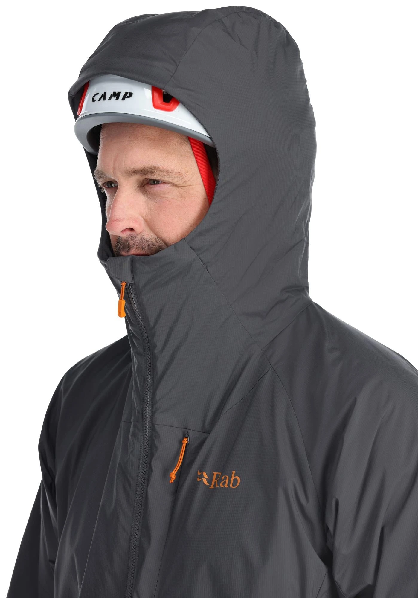 The VR Summit Jacket by RAB is a versatile, all-in-one, multi-sport mountain system. It is perfect for winter sports such as skiing, ice climbing, and mountaineering. With the advanced Vapour-Rise™ technology, the jacket features a fast-wicking brushed polyester lining inside a highly breathable Pertex® Quantum Air shell that keeps you dry and comfortable between periods of exertion and rest. The weatherproof DWR coating and adjustable helmet-compatible hood with stiffened peak maximize its breadth of mountain applications. The adjustable hem and cuffs help tailor the fit, the secure handwarmer pockets are elevated to stay clear of a climbing harness, and the full-length YKK® VISLON® ® double-ended front zip makes belaying a breeze.